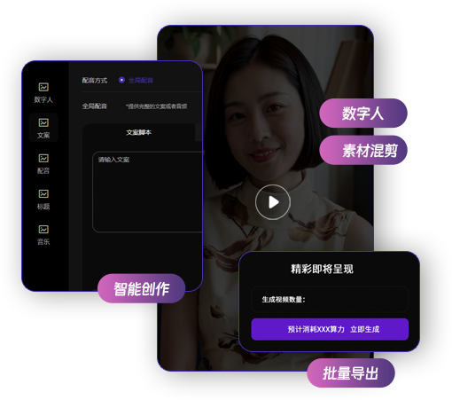 AI驱动工业化内容生产体系,实现从脚本生成、数字人口播到智能剪辑的一站式高效创作,支持跨平台内容持续输出。+数字化经营”一体化商业解决方案